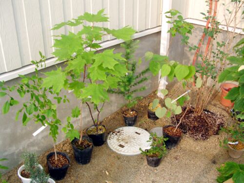 GW前から本格的に始まった我が家の植栽作業は、2m前後の木々の選定・手配・植付けが完了し、今は50cm前後の小さな苗木に関心が移ってきています。とりあえず、第1陣として手配した苗木たちが先週末に届き、玄関脇に並んで植付けを待っています(写…