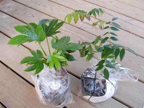 先日、通販で業者さんから取り寄せた苗木が届きました(写真1枚目)。今回購入したのは、ヤツデとにわふじの2つです。 ヤツデは、半日陰でも大丈夫ため、北側玄関のデッキ脇に植えるつもりで購入しました(写真2枚目)。もう1つのにわふじは、大きくなっ…
