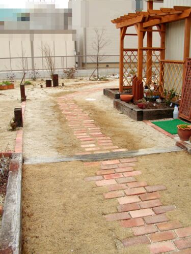 今年の作業始めとして、1/2から開始した車庫から庭へと続くレンガアプローチがついに完成しました。昨年の秋からレンガの置き場に困って、アプローチ部分にレンガを仮置きしたままずっと放置していたのですが、ようやく年明けから敷設作業を開始。毎週末…