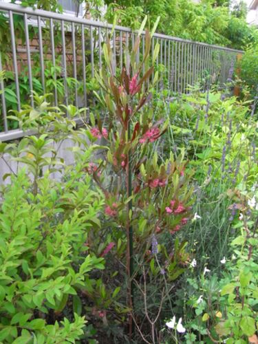 一昨年の12月に30cmほどの苗を購入して植えた「ドドナエア」。 2度目の春を迎え、背丈は1mほどになり、よく見るとピンク色の花らしきものが付いていました(写真1枚目)。 調べてみると、これは花ではなく種子のサヤらしいのですが、なかなか優しいピ…