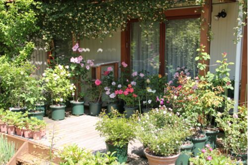 地植え以外に、鉢植えでもいくつかバラを育てて楽しんでいます。 バラを始めてすっかりその魅力にはまってしまい、毎年気に入った苗を買い足しているうちにかなりの数になり、6年経った今では、鉢植えの置き場にも困って、リビング前のデッキの上を占拠する…
